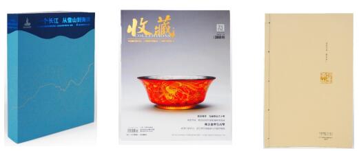 “定制化文创产品与数字印刷新应用”展区则展示了各种采用数字印刷技术的样品: 1)上海图书馆定制化文创产品 -- 书签、明信片、圣诞贺卡、新春福字、春联等;2)富士胶片商业创新“数字印刷创新应用大奖赛(IPA)”获奖作品 -- 《收藏》杂志数字印刷版、精装书《一个长江 从雪山到海洋》、宣纸印制的线装书《黄山》等;3)数字印刷创新应用样品 -- 个性化标签、包装盒、台历等。