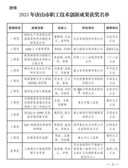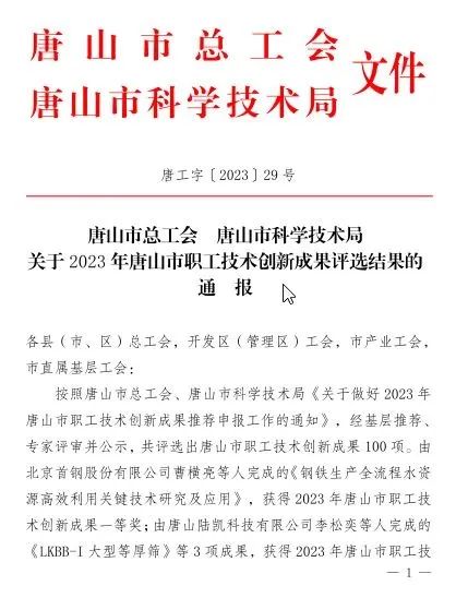 “2023年唐山市职工技术创新成果评选”活动,由唐山市总工会、唐山市科学技术局联合举办,旨在积极推动实施创新驱动发展战略,不断提升创新成果质量,加速实现创新成果转化,激发全市广大职工的创新创造活力。
