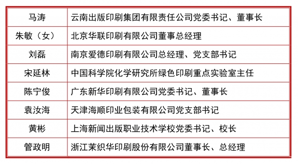 第十七届毕昇印刷杰出成就奖获奖者名单(按姓氏笔画排序)