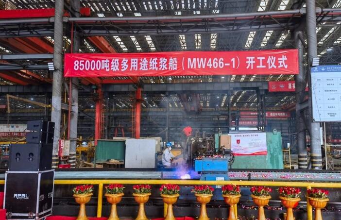 新年造新船!85000吨多用途纸浆船开工