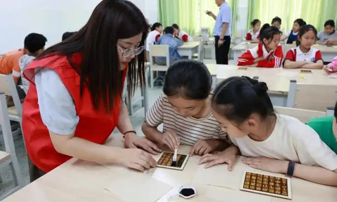 滕州市善南街道“匠心聚 邂逅非遗”非遗活字印刷体验活动走进清华园小学