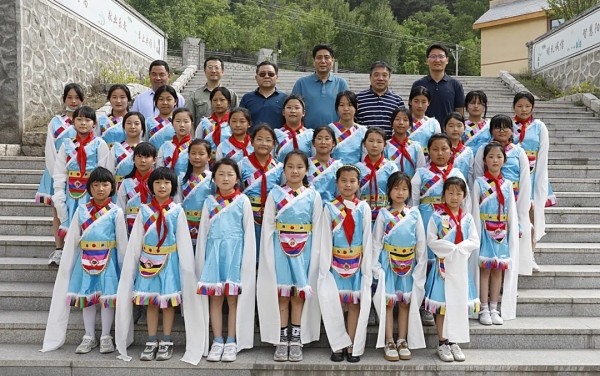 最后,领导们与正在排练准备参加学区第二届艺术节“马兰花开遍太行山”文艺汇演的同学们合影留念。