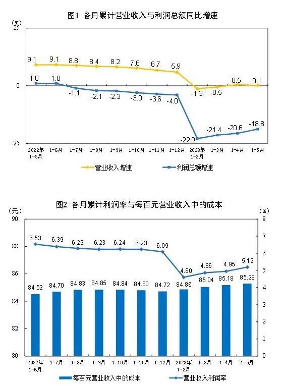 5月份,规模以上工业企业实现利润总额6358.1亿元,同比下降12.6%。