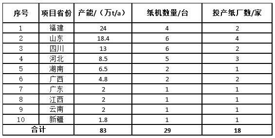 联盛在福建投产4台进口新月型纸机,合计产能24万t/a;