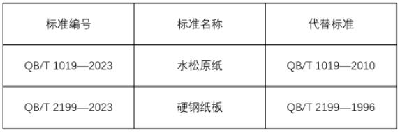 2023年7月10日,工业和信息化部科技司发布了437项行业标准、1项行业标准外文版及1项行业标准修改单报批公示,其中包括《水松原纸》和《硬钢纸板》两项造纸领域行业标准。报批公示结束后,两项标准即将正式发布,具体信息如下表所示。