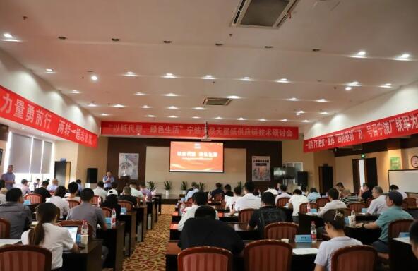 为推动环保产业发展,践行绿色生活理念,APP大纸事业部旗下工厂宁波亚洲浆纸业于7月28日举办了以纸代塑、绿色生活为主题的无塑纸供应链技术研讨交流会。本次研讨会汇集了来自产业链上下游企业的代表,包括全球化学品制造商巴斯夫、索理思、三井化学,纸杯机械制造商新德宝、新发现、环强机械,以及下游各淋膜加工厂等共计60余名业内专业人士,共同探讨EPP和REEP以纸代塑技术在可持续发展方面的重要性。