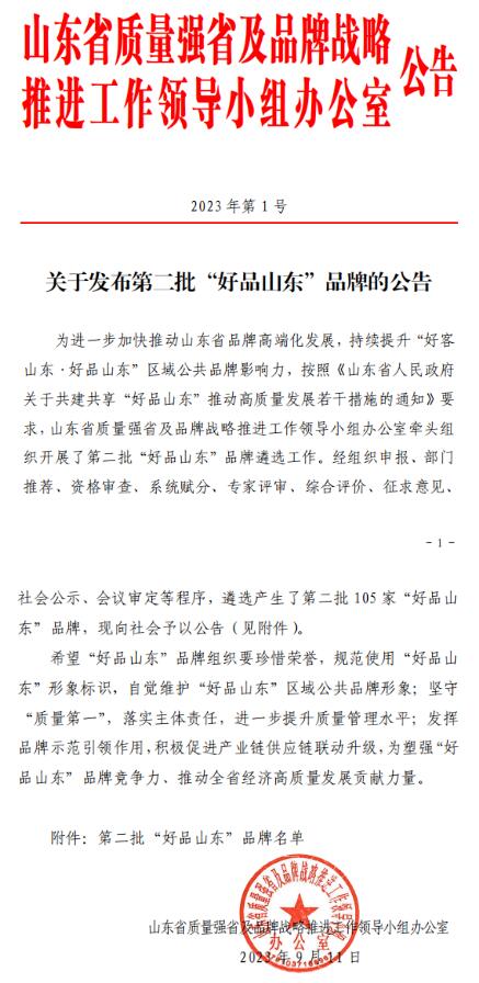 今年3月,山东省质量强省办牵头组织开展第二批“好品山东”品牌遴选。在遴选范围上,主要面向第一批“好品山东”品牌未涉及的行业领域,重点围绕山东省“十强产业”“四新”领域及标志性产业链,适当向服务业倾斜。经综合评价,从1851个申报主体中择优遴选出了105个技术水平先进、市场占有率高、品牌影响力大、行业引领性强的“好品山东”品牌,展现了山东省新旧动能转换及经济高质量发展成果。