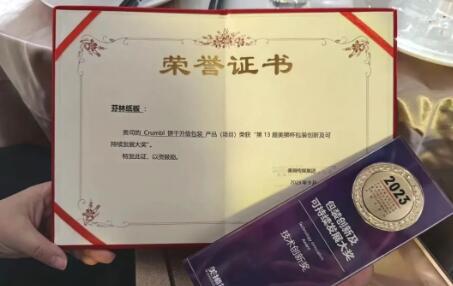 评审委员会代表为芬林纸板颁奖