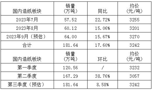注:以上为国内造纸板块全口径数据,未经合并抵消和审计。