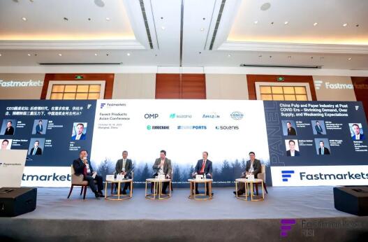 随后进入上午最后一个精彩环节:CEO圆桌论坛。论坛由Fastmarkets RISI中国区总经理李炜主持,特邀四位重量级嘉宾:亚太森博集团商务总裁胡伟、麦肯锡全球董事合伙人Matthew Seidner、山鹰国际首席战略官裴辉,以及芬林集团亚太区总裁宋望球,共同就 “后疫情时代,在需求收缩、供给冲击、预期转弱三重压力下,中国造纸业何去何从?” 为主题展开讨论。