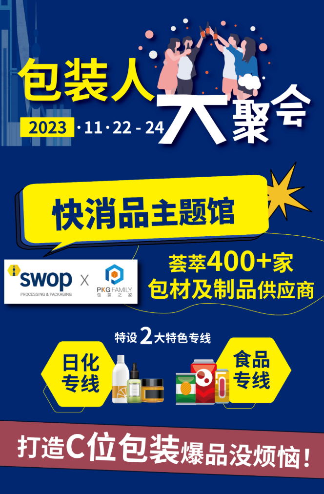 swop 2023将于2023年11月22日至24日在上海新国际博览中心N1-N5馆举行。swop 2023将覆盖食品、饮品、甜点、烘焙、医药、化妆品、非食品消费品以及工业产品等终端领域,整合包装全产业链,从包装机械到包装材料,从包装印刷到包装设计等各个领域。