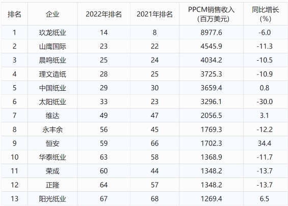 日前,美国paper360杂志根据2022年(部分企业为财年)企业纸浆、纸张、加工和贸易(PPCM)业务的净销售额为依据,公布了最新的全球纸业75强名单。