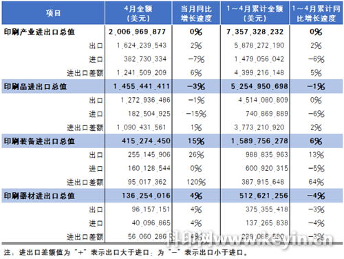 1~4月印刷产业出口和进口基本情况