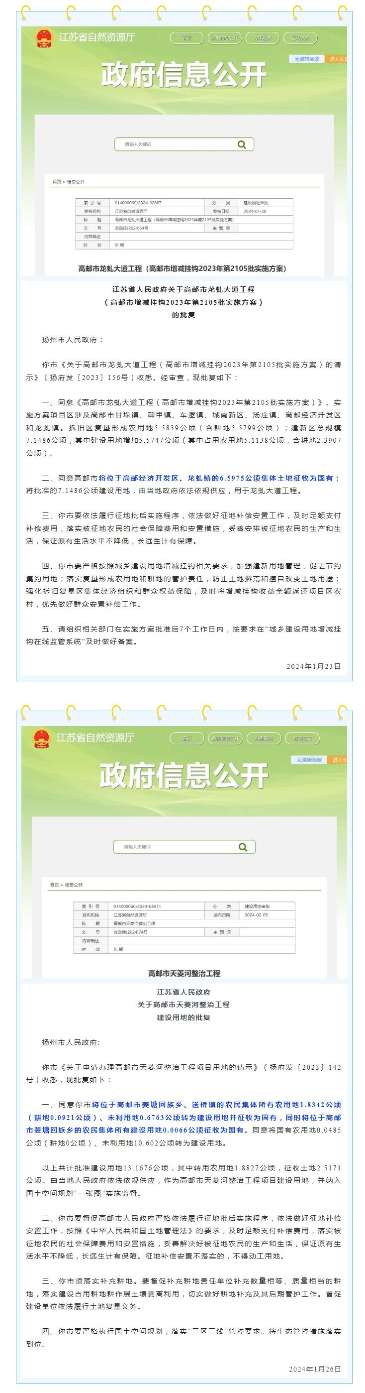 征地!省政府批复!涉及高邮多个地方……