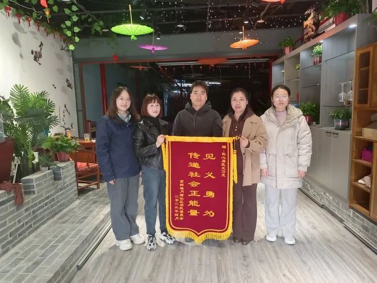 高邮一店主奋勇救火解危机!社区送锦旗表示感谢!