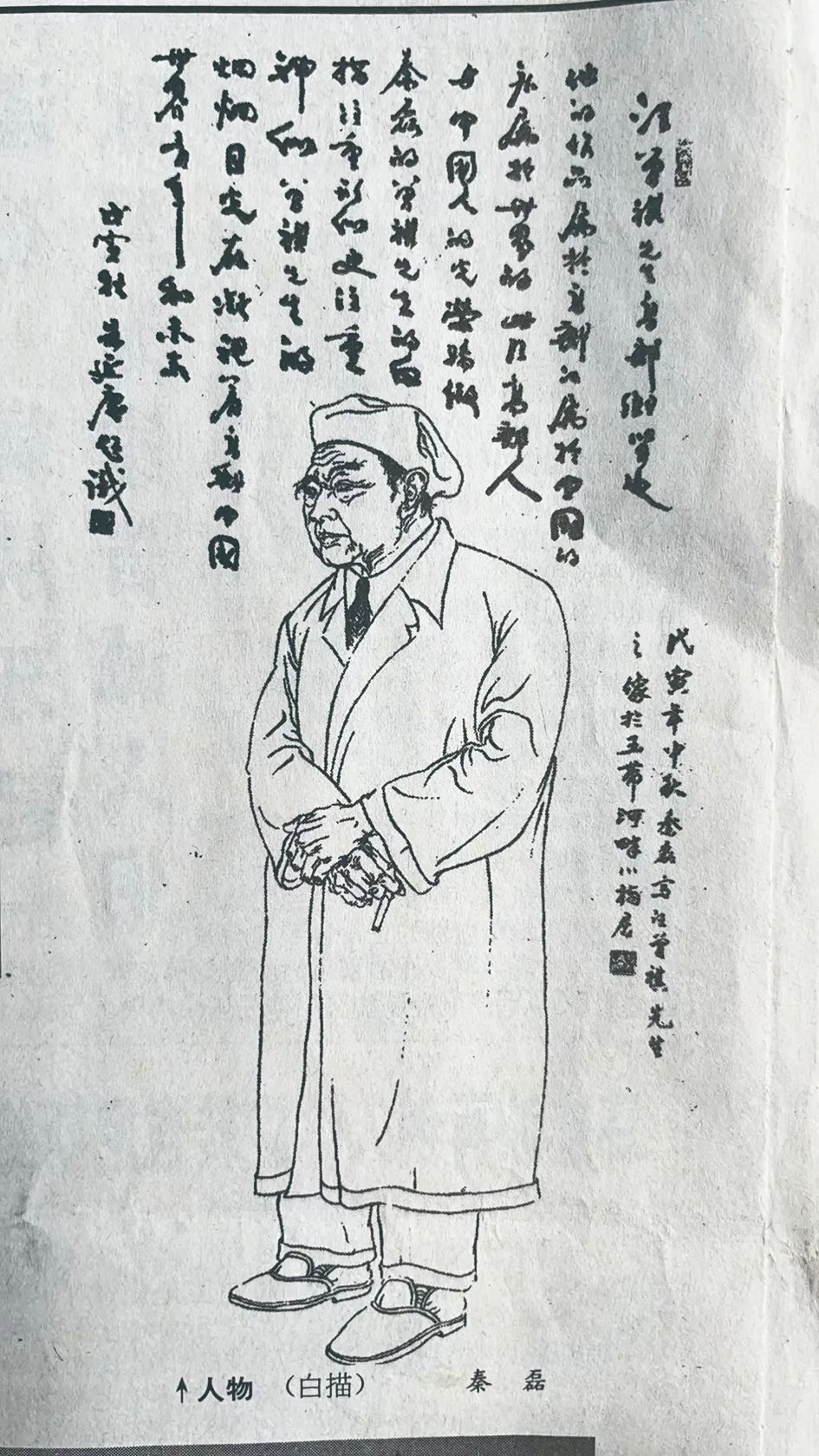 “汪老是我唯一一个画了五次的人物,每一次画,感受都不同。”秦磊回忆道,他第一次画是在1996年年底,画了一幅四尺三开汪老的肖像,由于初出茅庐,作品表现力一般,但却是自己用心创作。1998年中秋,白描汪老全身像,由我市知名学者朱延庆题款,属于非常特殊的一次创作。让他印象最深刻的是2008年画的汪老坐姿肖像。“画前,我做了很多准备工作,观察汪老的照片,阅读他的作品,看汪老朋友们回忆他的文章,去了解汪老是怎样的人。”秦磊说,从汪老面部表情到手部特写,从藤椅磨损细节到火柴的摆放等都是经过不断地推敲才确定的,最终作品效果也颇为满意,被选入《2008江苏高邮市美术书法摄影作品集》,在南京美术馆老馆展出后,获得一致好评。2015年,秦磊在第三稿的基础上又创作了《梦故乡》,作品参加扬州城建2500年重大历史题材展。