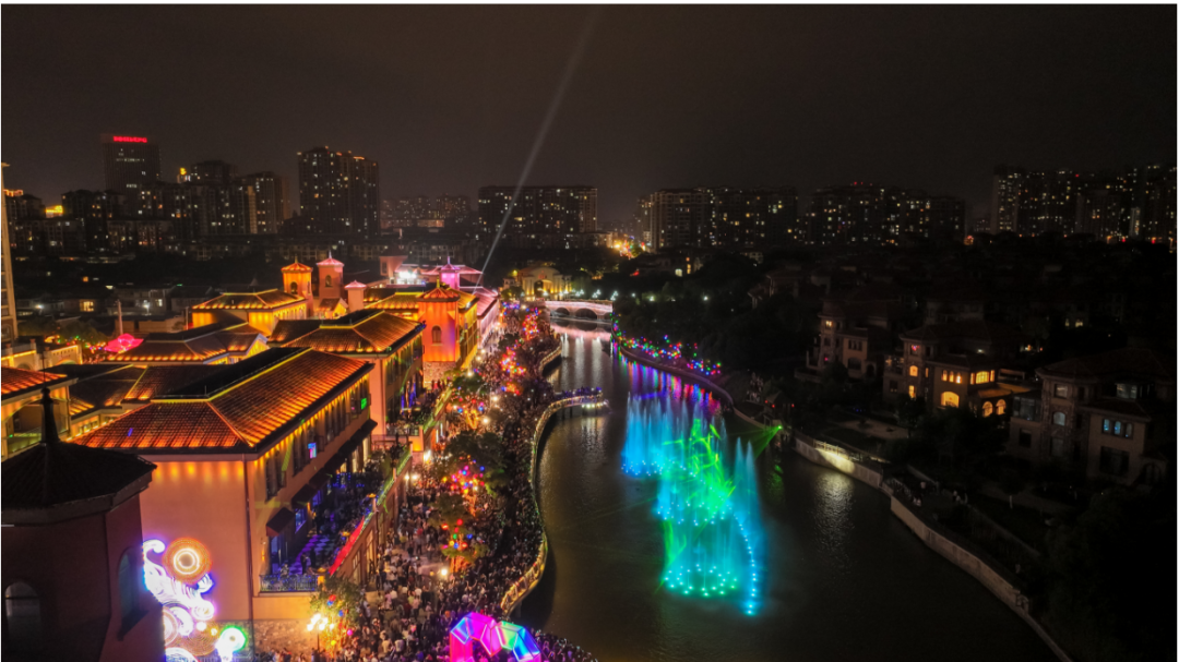 据了解,陆宇·幸福里街区是陆宇集团精心打造的城市夜游经济新名片,街区东西向80米、南北420米,拥有1条主景观轴,4大主要景观节点,6大景观小组团。街区是以夜市商业为载体,花灯喷泉为点缀,特色活动为媒介,集“潮玩、时尚、直播、表演、娱乐、购物、打卡”等众多功能为一体的沉浸式夜间经济街区。