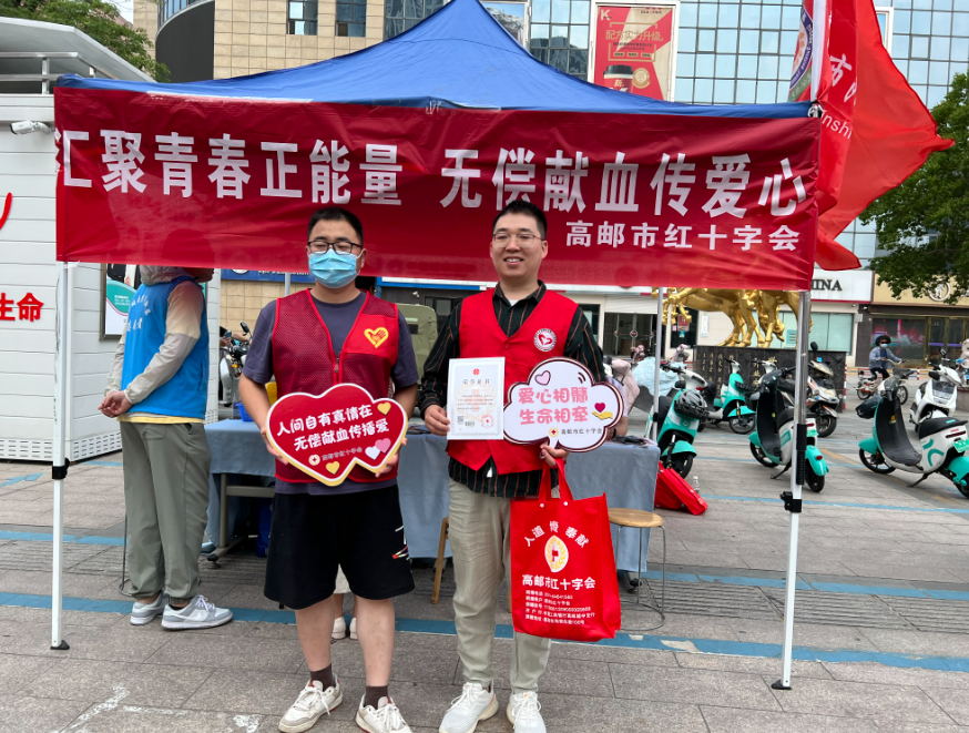 当日上午,团市委、卫健委、市红十字会和扬州市中心血站高邮采血点等部门在世贸广场献血屋开展“‘6·14’世界献血者日”主题宣传活动。