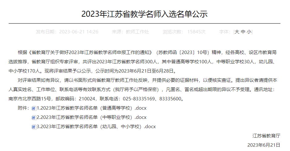 江苏省教学名师支持计划是由省教育厅组织实施的高层次教育人才支持计划,旨在充分发挥省级教学名师在高质量教师队伍建设中的引领作用,促进全省教师教育教学水平提升,加快建设高素质专业化创新型教师队伍。