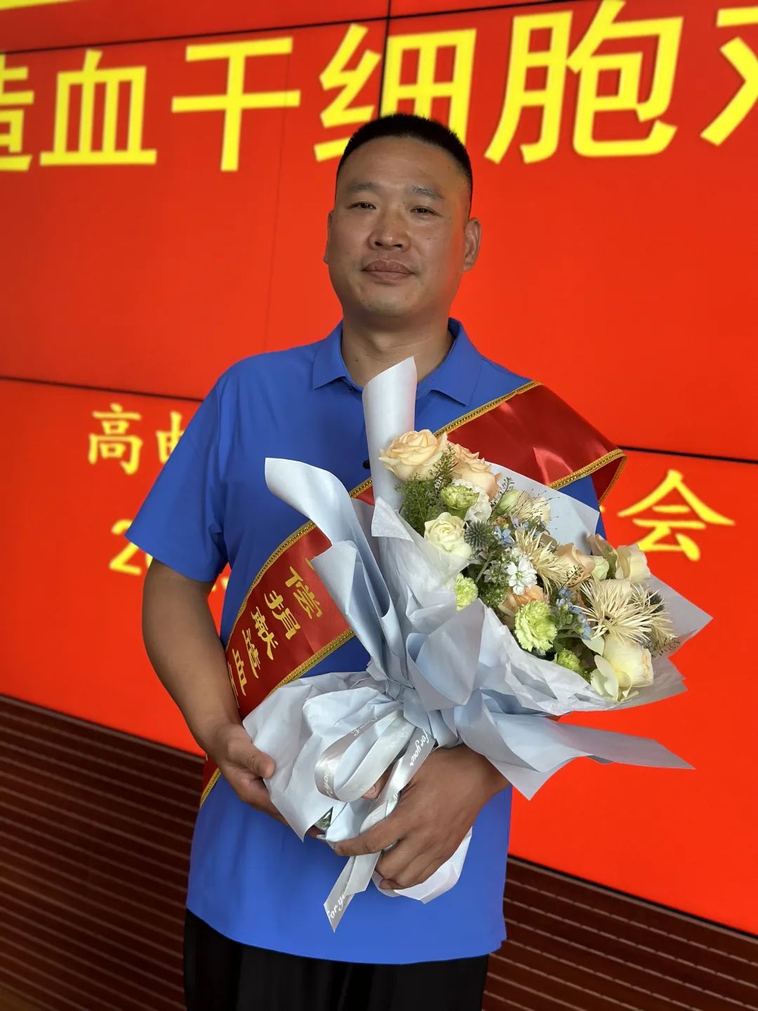 3日下午,“献血达人”郑玉朝赴南京捐献造血干细胞。如果捐献成功,他将成为我市第八位造血干细胞捐献者。