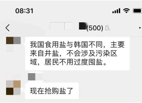 不少购买食盐的市民表示,虽然知道食盐保质期只有3年,但是看到其他人买了,也就“跟风”囤一些。记者注意到,市民的恐慌一部分是来自微信群,一些微信群已经开始分享“囤盐”信息。