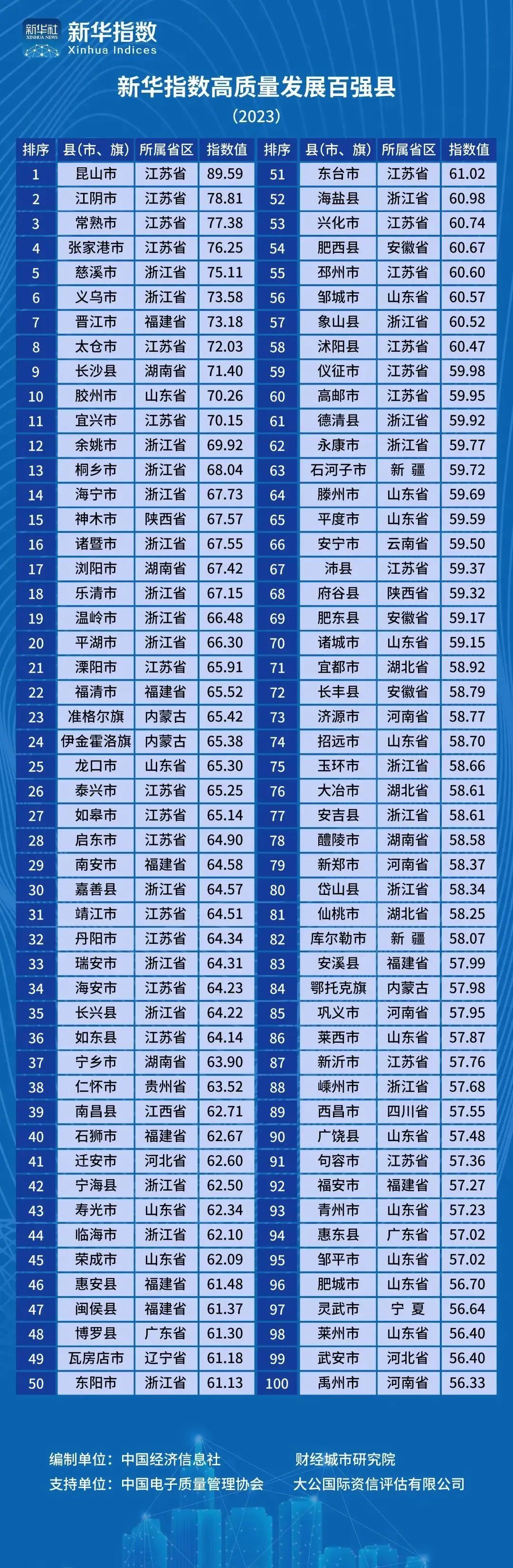 公布了“2023中国县域高质量发展